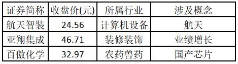 从涨势强度来看,涨停板个股中,股价创出历史新高的个股共有3只,包括航天智装、亚翔集成、百傲化学。