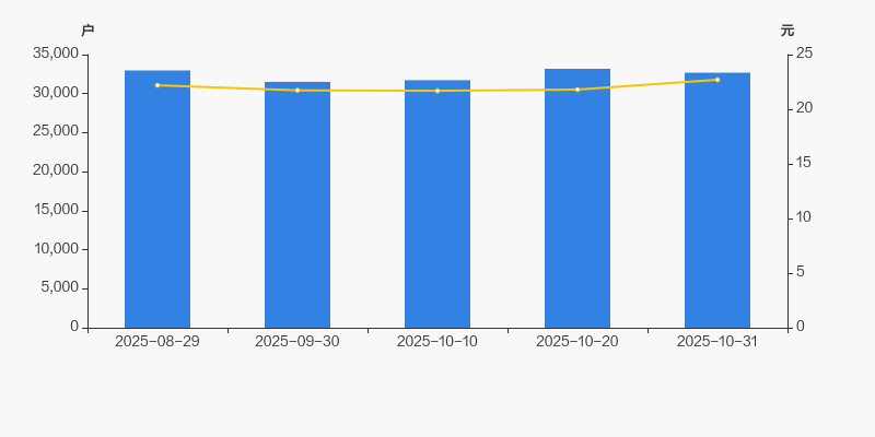 2025年8月29日至今,公司股东户数有所下降,区间跌幅为0.87%。2025年8月29日至2025年10月31日区间股价上涨2.30%。