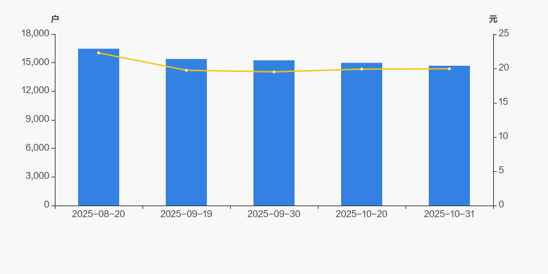 2025年8月20日至今,公司股东户数显著下降,区间跌幅为10.85%。2025年8月20日至2025年10月31日区间股价下降10.46%。