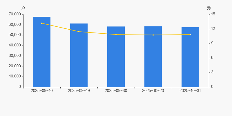 2025年9月10日至今,公司股东户数显著下降,区间跌幅为14.63%。2025年9月10日至2025年10月31日区间股价下降17.80%。