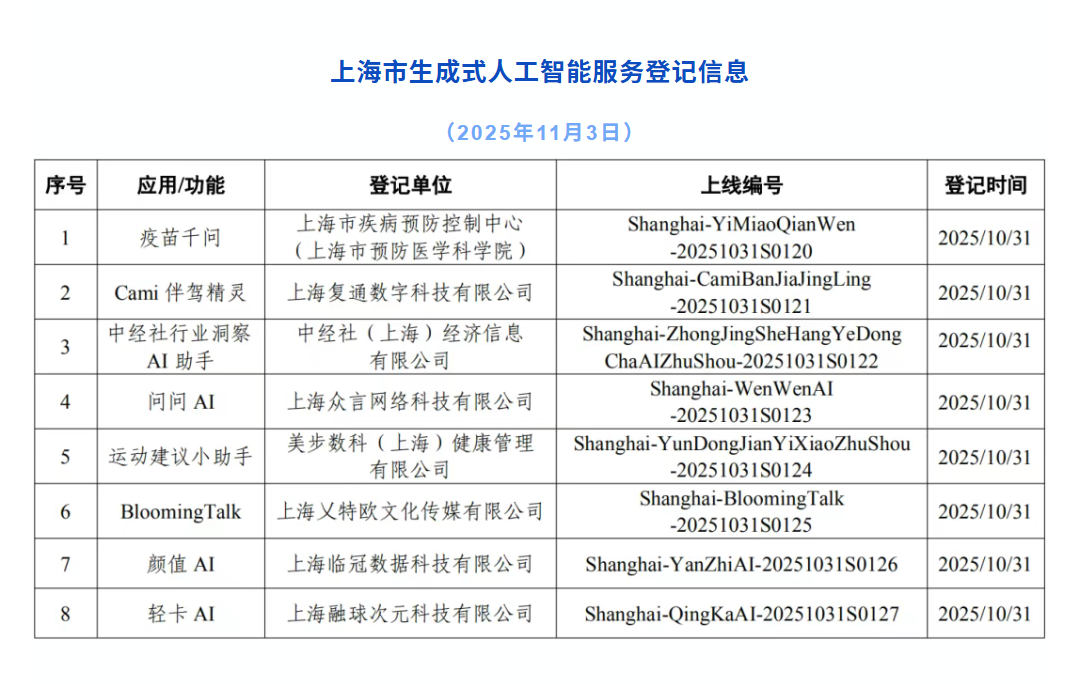 据“网信上海”公众号消息,截至10月31日,上海市新增8款已完成登记的生成式人工智能服务,累计已完成127款生成式人工智能服务登记。