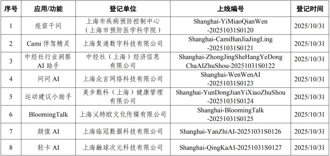 上海市新增8款已完成登记的生成式人工智能服务
