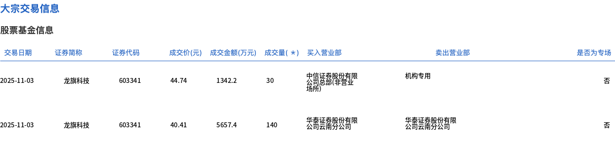 龙旗科技今日大宗交易成交170万股 成交额6999.6万元