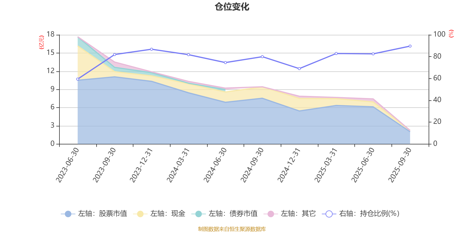 据定期报告数据统计,成立以来平均股票仓位为78.86%,同类平均为85.99%。2025年三季度末基金达到89.66%的最高仓位,2023年上半年末最低,为59.43%。