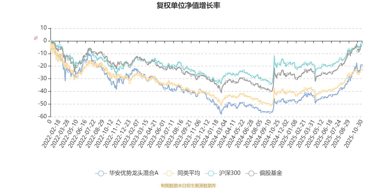 截至10月30日,华安优势龙头混合A近三个月复权单位净值增长率为28.24%,位于同类可比基金84/621;近半年复权单位净值增长率为48.59%,位于同类可比基金87/621;近一年复权单位净值增长率为55.81%,位于同类可比基金78/611;近三年复权单位净值增长率为30.11%,位于同类可比基金171/518。