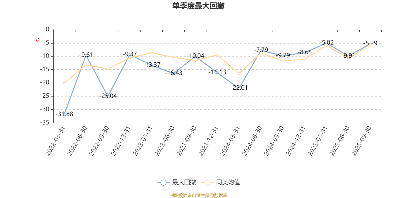 截至10月30日,基金近三年最大回撤为46.3%,同类可比基金排名455/513。单季度最大回撤出现在2022年一季度,为31.88%。