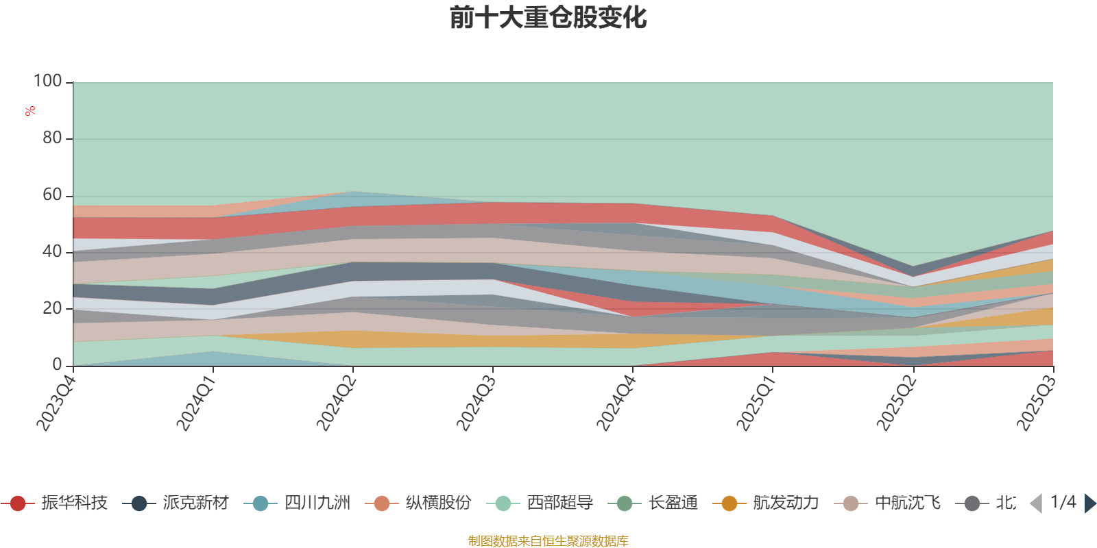 截至2025年三季度末,基金十大重仓股分别是航发动力、振华科技、鸿远电子、中航沈飞、西部超导、中航成飞、火炬电子、新雷能、纵横股份、智明达。