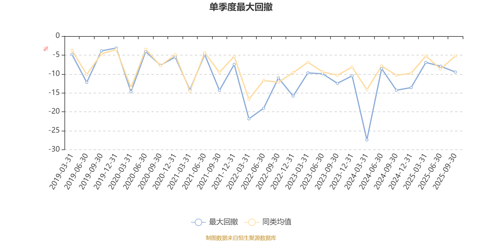 截至10月30日,基金近三年最大回撤为45.32%,同类可比基金排名1073/1274。单季度最大回撤出现在2024年一季度,为27.44%。