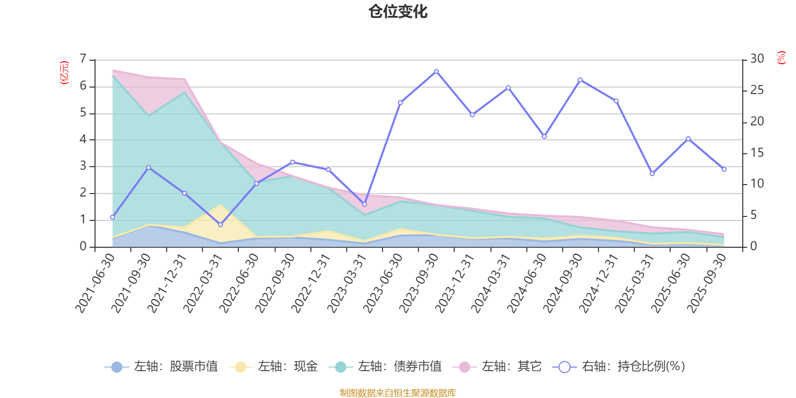 据定期报告数据统计,近三年平均股票仓位为18.88%,同类平均为19.14%。2023年三季度末基金达到28.12%的最高仓位,2022年一季度末最低,为3.58%。