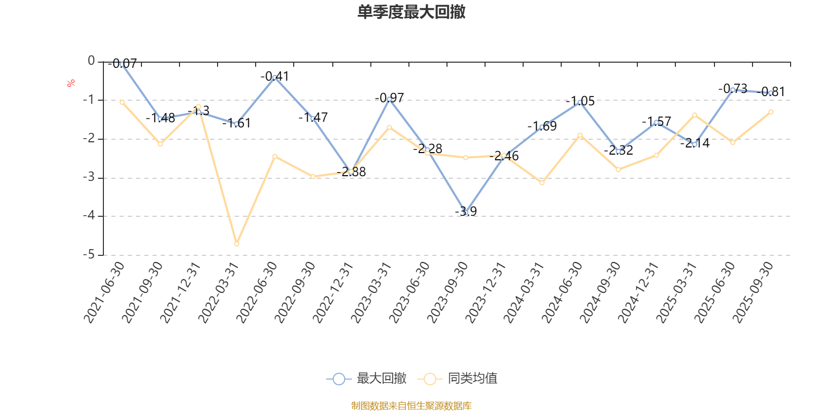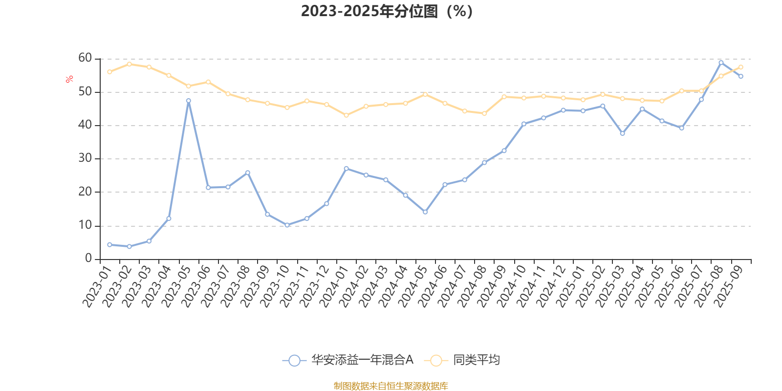 通过所选区间该基金净值增长率分位图,可以观察该基金与同类基金业绩比较情况。图为坐标原点到区间内某时点的净值增长率在同类基金中的分位数。