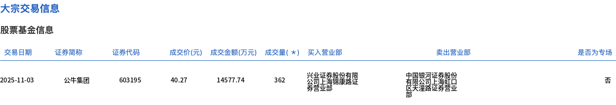 公牛集团今日大宗交易折价成交1697.1万股 成交额6.83亿元