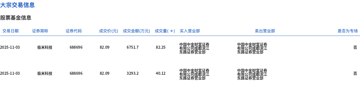 极米科技今日大宗交易折价成交122.37万股 成交额1亿元