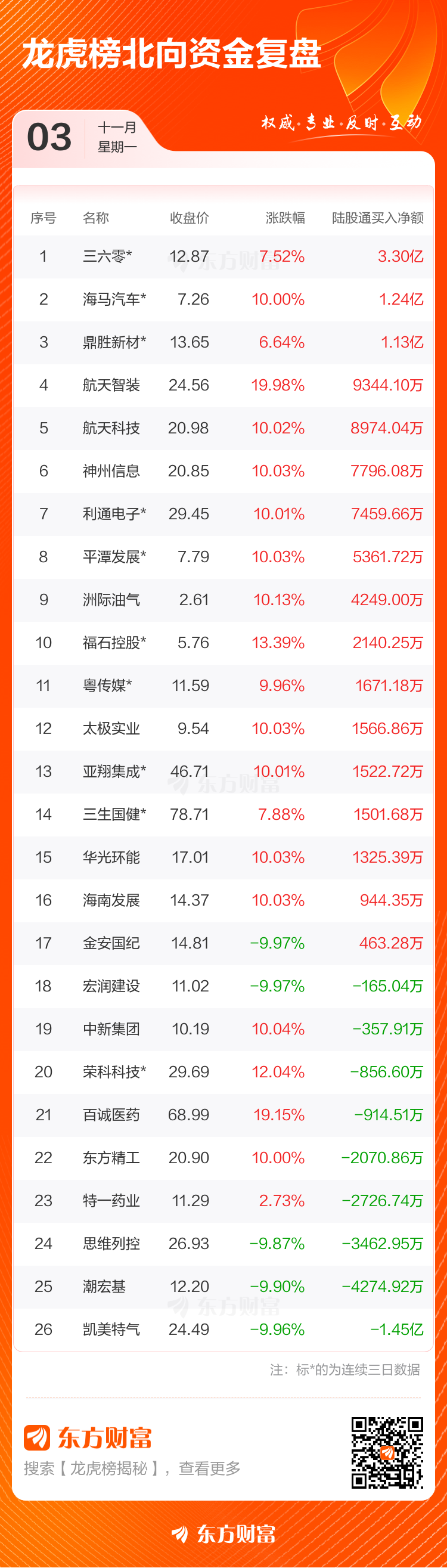 11月3日龙虎榜复盘:“宁波桑田路”2.07亿元净买入三六零