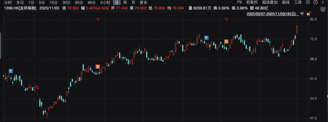 11月3日,友邦保险涨5.96%。2025年以来,该股累计涨幅达45.91%。