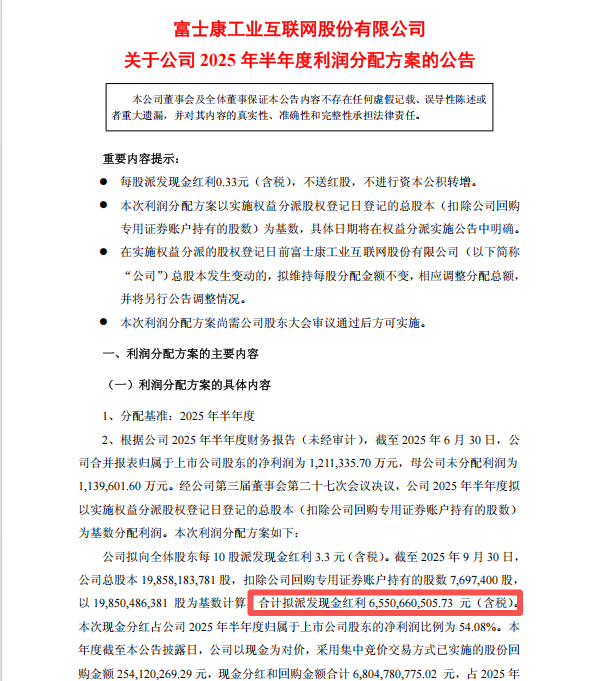 工业富联公告称,公司发布2025年中期利润分配方案,结合了自身发展阶段、未来资金需求等因素。