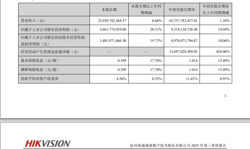 以海康威视为例,其拟向全体股东每10股派发现金红利4元(含税),拟合计派发现金红利36.66亿元。2025年前三季度,公司实现归母净利润93.19亿元,同比增长14.94%。