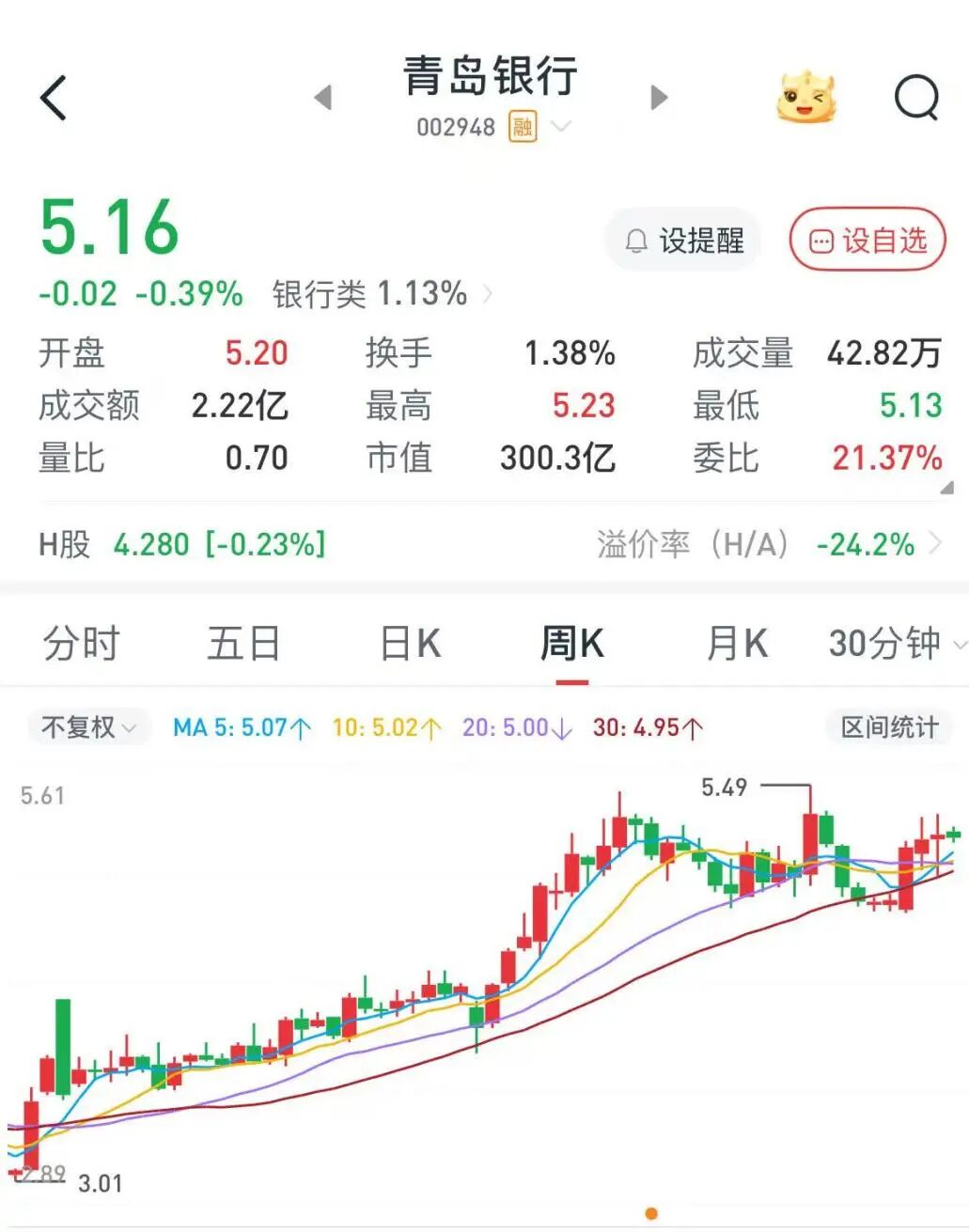 公开资料显示,青岛银行前身是青岛城市合作银行,该行由青岛市区21家城市信用社重组而成,于2008年更名为青岛银行。2015年12月,青岛银行在香港联交所上市,并于2019年1月在深交所A股挂牌,是山东省首家上市银行,也是全国第二家A+H上市城商行。