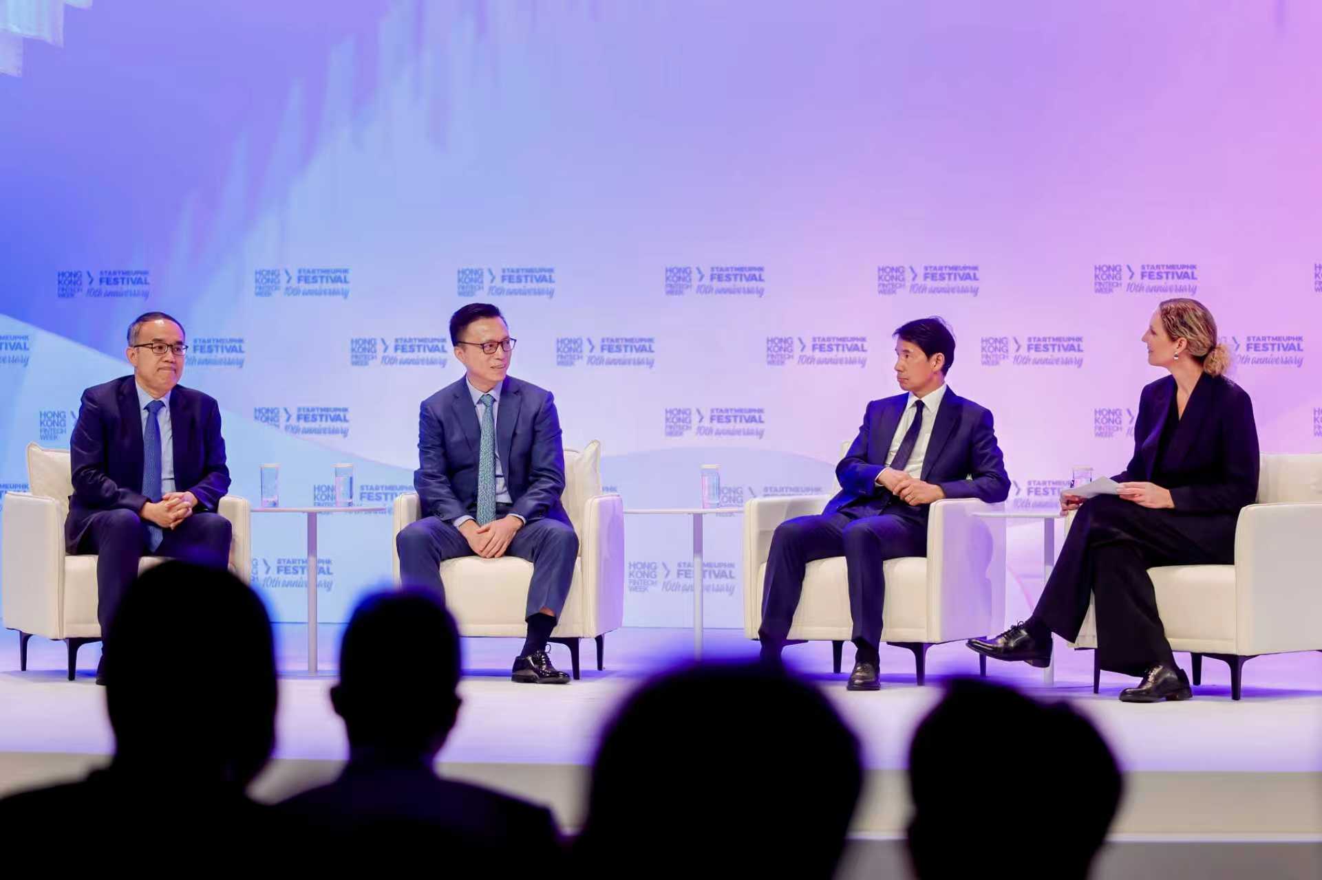 在主论坛的圆桌环节,蚂蚁集团董事长井贤栋与香港特别行政区政府财经事务及库务局局长许正宇等嘉宾对技术变革、产业应用及香港的创新路径等话题进行交流。