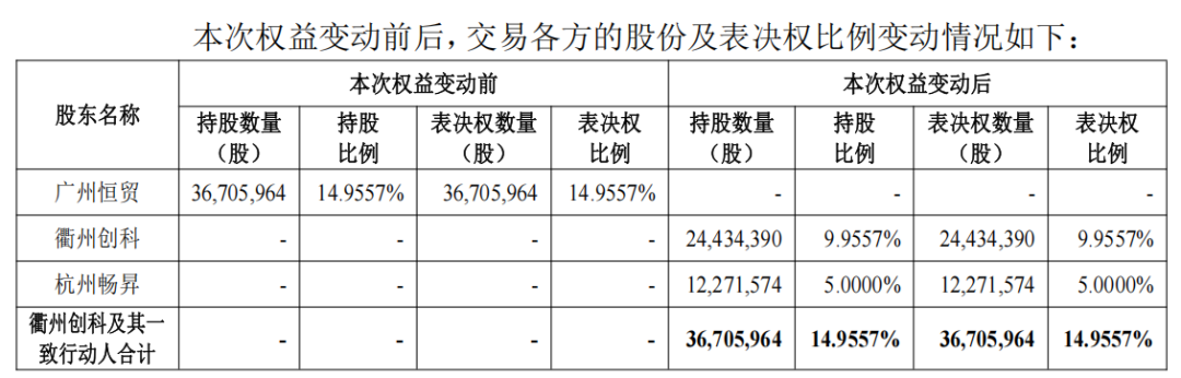 同时,衢州创科和杭州畅昇在10月27日签署《一致行动及表决权委托协议》。