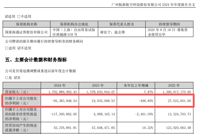 航新科技公告称,公司2024年归母净利润为负值,主要是因为特殊机构客户的应收款项有所增长,并且部分应收款账龄有所增加,导致坏账准备计提增加。