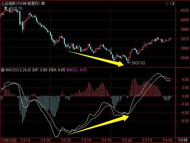目前,上证指数的5分钟出现了底背离共振。就经验来看,5分钟级别的底背离共振能支撑一到两天的反弹。