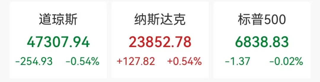 11月3日,美股三大指数集体高开后走低,截至北京时间23:15左右,道琼斯指数跌0.54%,标普500指数跌0.02%,纳斯达克综合指数涨0.54%。