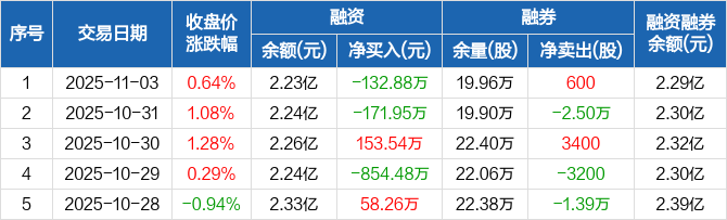 晨光股份:融资净偿还132.88万元,融资余额2.23亿元(11-03)