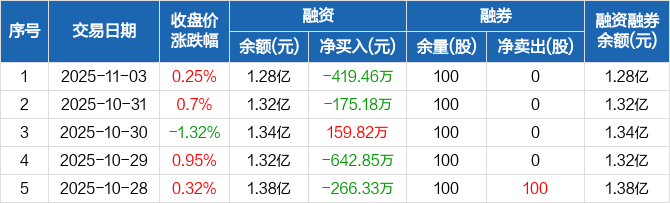 上海汽配:融资净偿还419.46万元,融资余额1.28亿元(11-03)