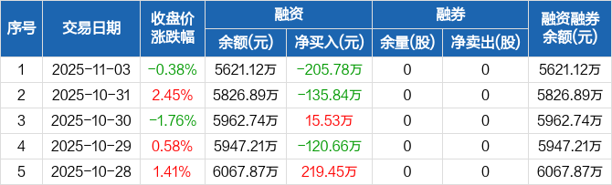 恒誉环保:融资净偿还205.78万元,融资余额5621.12万元(11-03)