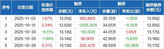 长沙银行:融资净买入960.89万元,融资余额13.01亿元(11-03)