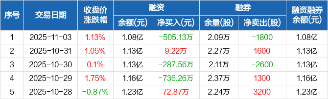 渤海轮渡:融资净偿还505.13万元,融资余额1.08亿元(11-03)