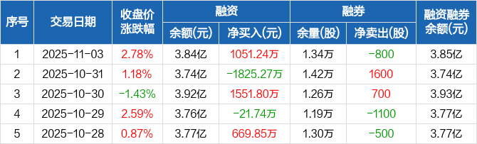 长白山:融资净买入1051.24万元,融资余额3.84亿元(11-03)
