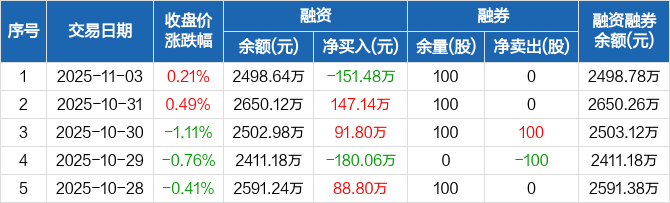 恒尚节能:融资净偿还151.48万元,融资余额2498.64万元(11-03)