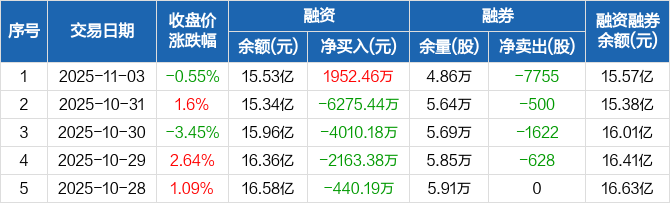传音控股:融资净买入1952.46万元,融资余额15.53亿元(11-03)