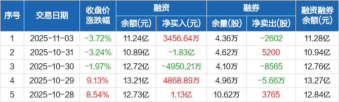 生益电子:融资净买入3456.64万元,融资余额11.24亿元(11-03)