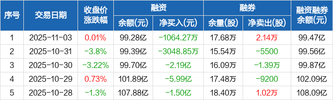 中科曙光融资融券信息显示,2025年11月3日融资净偿还1064.27万元;融资余额99.28亿元,较前一日下降0.11%