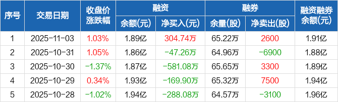 梅雁吉祥:融资净买入304.74万元,融资余额1.89亿元(11-03)