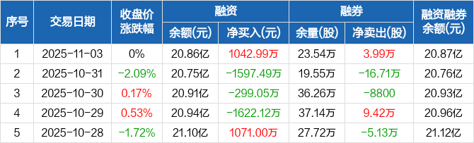 中国中铁:融资净买入1042.99万元,融资余额20.86亿元(11-03)