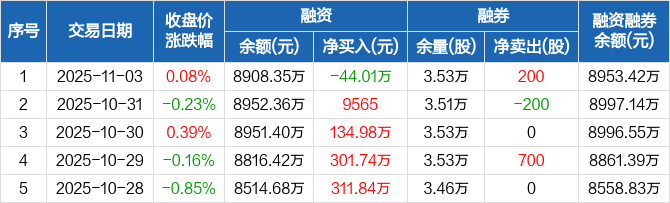 江苏新能:融资净偿还44.01万元,融资余额8908.35万元(11-03)