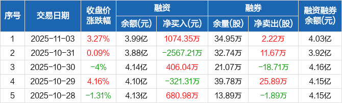 上海临港:融资净买入1074.35万元,融资余额3.99亿元(11-03)