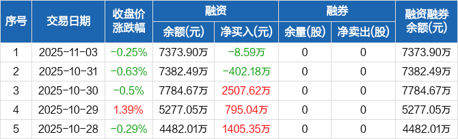 新亚电子:融资净偿还8.59万元,融资余额7373.9万元(11-03)