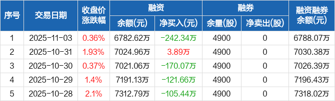 凯盛新能:融资余额6782.62万元,创近一年新低(11-03)