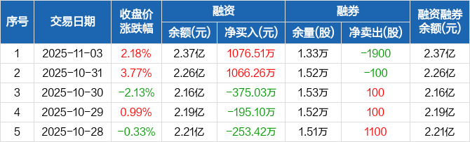 翠微股份:融资净买入1076.51万元,融资余额2.37亿元(11-03)