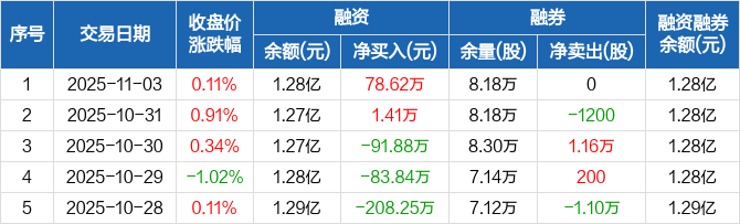 台华新材:融资净买入78.62万元,融资余额1.28亿元(11-03)