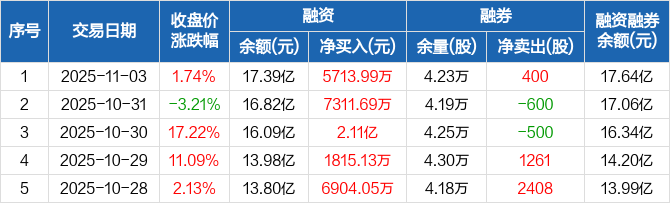 国盾量子:融资余额17.39亿元,创历史新高(11-03)