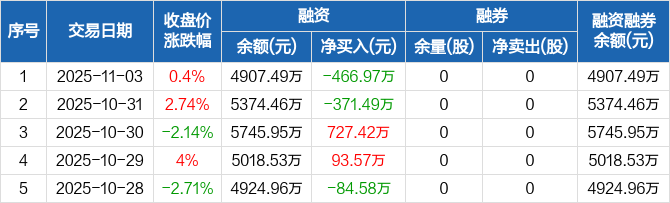 工大高科:融资净偿还466.97万元,融资余额4907.49万元(11-03)