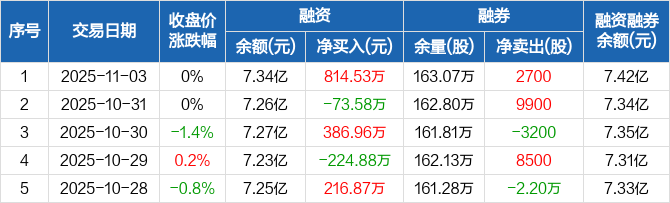 华发股份:融资净买入814.53万元,融资余额7.34亿元(11-03)