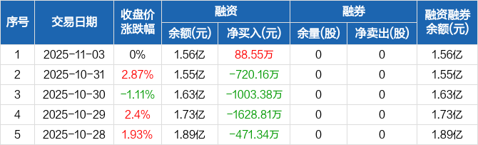 天洋新材:融资净买入88.55万元,融资余额1.56亿元(11-03)