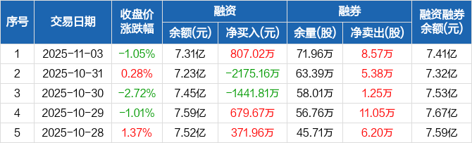 北方导航:融资净买入807.02万元,融资余额7.31亿元(11-03)