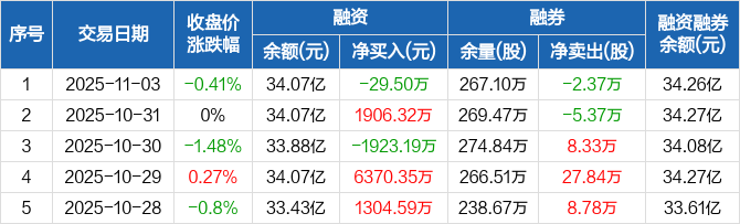 保利发展:融资净偿还29.5万元,融资余额34.07亿元(11-03)